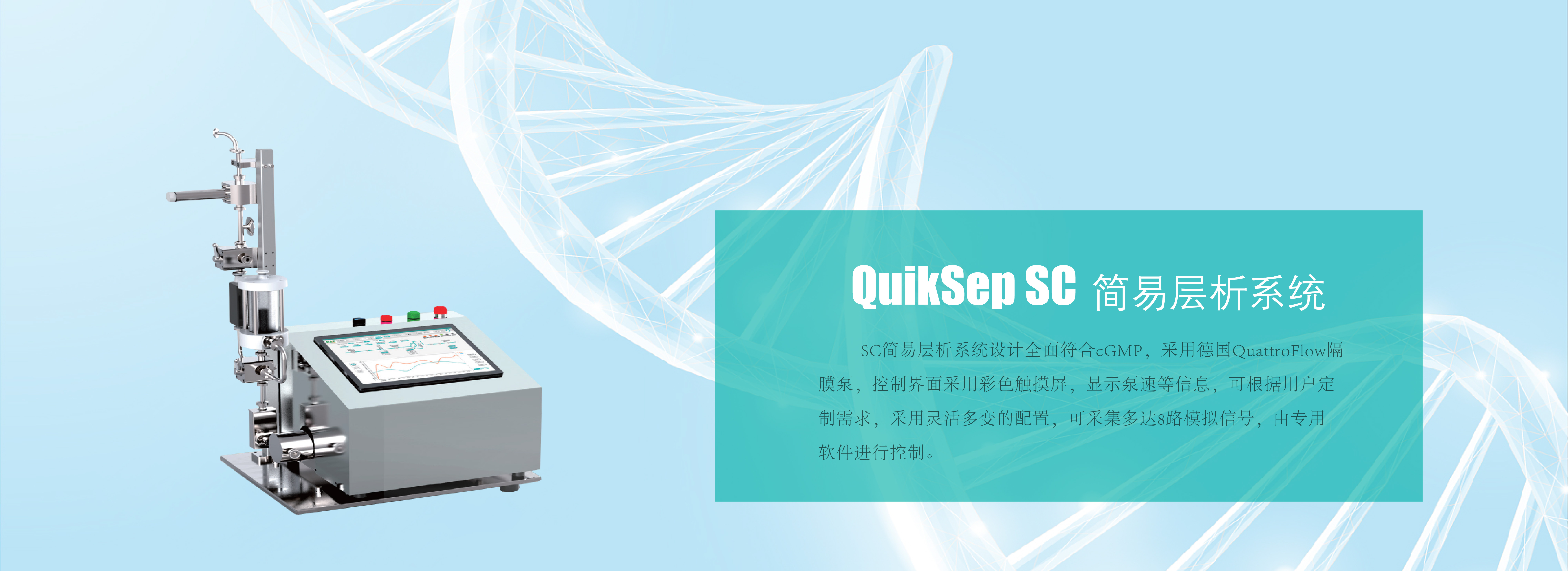 慧德易科技QuikSep 生物智能泵是通過軟件控制隔膜泵的轉速,配合衛生級壓力流通池及管路,通過實時壓力檢測和電機配合,實現恒流和恒壓,防止泵超壓,實現定時定量,適用于生物制藥在層析、過濾、料液轉移等各種輸送液體的應用。 點擊閱讀+